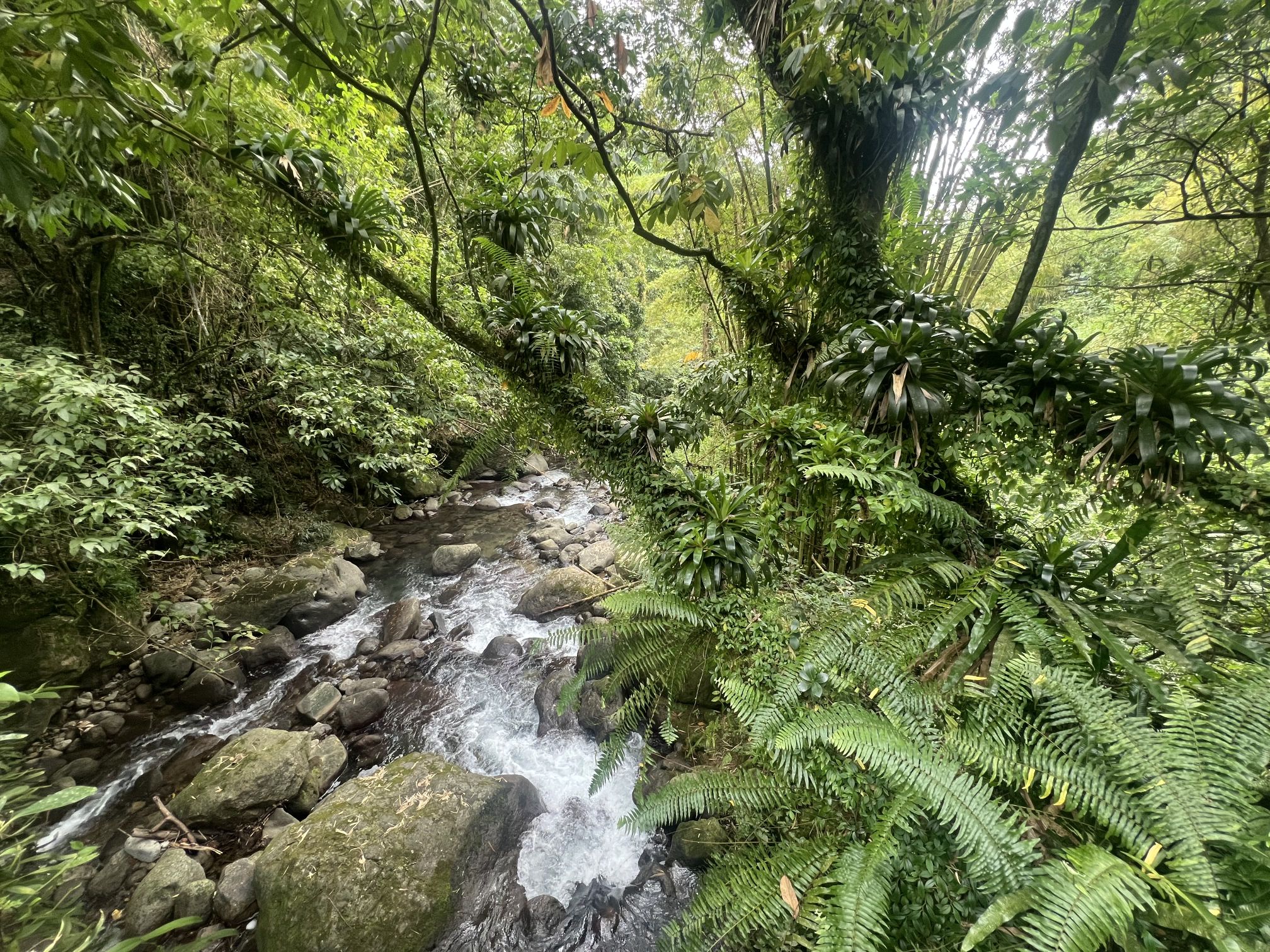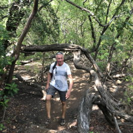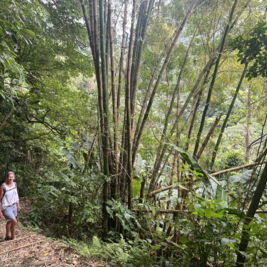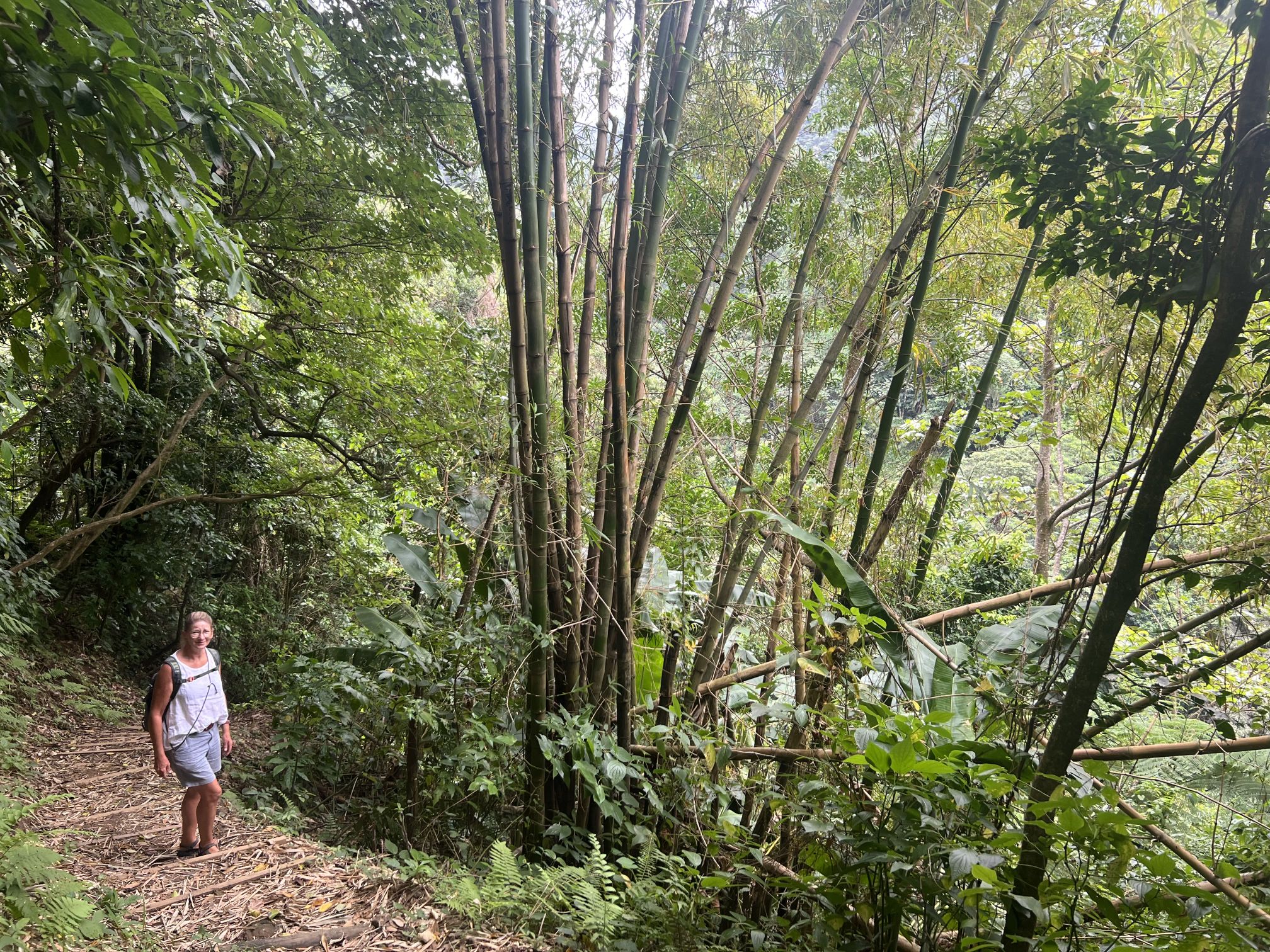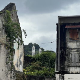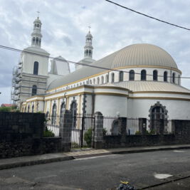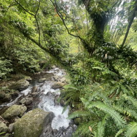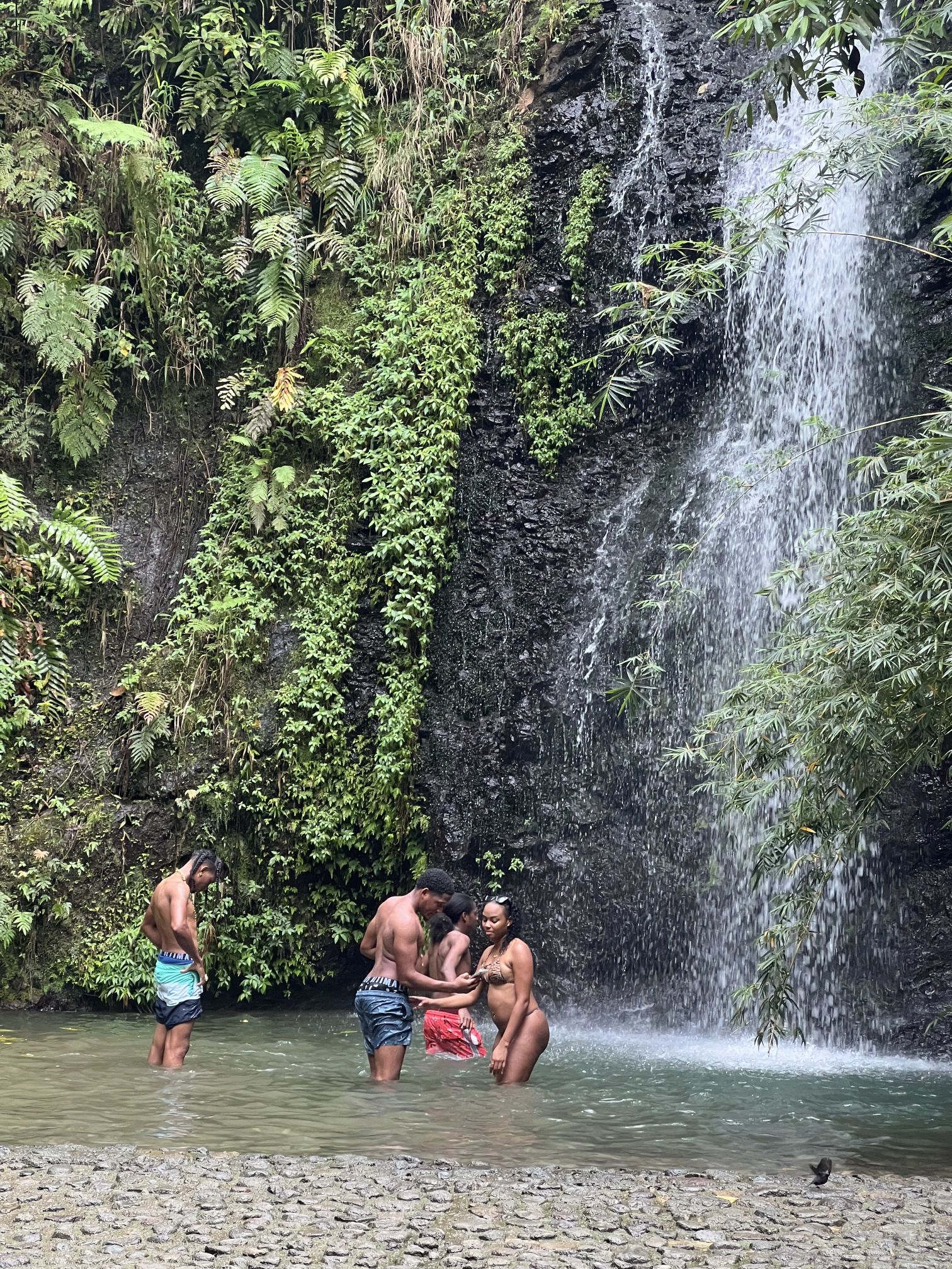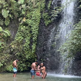 Am nächsten Tag fahren wir in den Norden. Nach Fort de France geht es auf schönen Serpentinen entlang der Westküste zum Städtchen St. Pierre. Die Stadt war ehemals die Hauptstadt von Martinique. Beim Ausbruch des Vulkans Montagne Pelèe 1902 wurde sie innerhalb von 2 min ausgelöscht. Etwa 30 000 Menschen kamen bei der Naturkatastrophe ums Leben. Heute hat die Stadt nur noch einige tausend Einwohner und ist wirtschaftlich eher unbedeutend. Man findet an einigen Gebäuden/Ruinen noch Spuren des Vulkanausbruchs. Wir besichtigen auch das kleine Vulkanmuseum und spazieren ein bisschen durch den beschaulichen Ort. Für den Rückweg haben wir uns eine Route durch das Landesinnere ausgesucht. Auf engen Straßen mit vielen Serpentinen und üppiger Regenwaldvegetation geht es wieder in den Süden. Lieni hat voll Spaß beim Fahren und ich klammere mich am Haltegriff des Autos fest. So hat jeder sein eigenes Abenteuer. Eine kleine Wanderung durch den Regenwald runter zu einem der zahlreichen Flüsse macht Spaß, ist voll idyllisch und diesmal dann auch ein gemeinsames Abenteuer. Wir halten noch an einem Wasserfall, aber der ist voll von Touristen. Einige lassen es sich trotzdem nicht nehmen und baden unten im kleinen Lake. Wir verschwinden schnell wieder und machen uns auf den Heimweg.