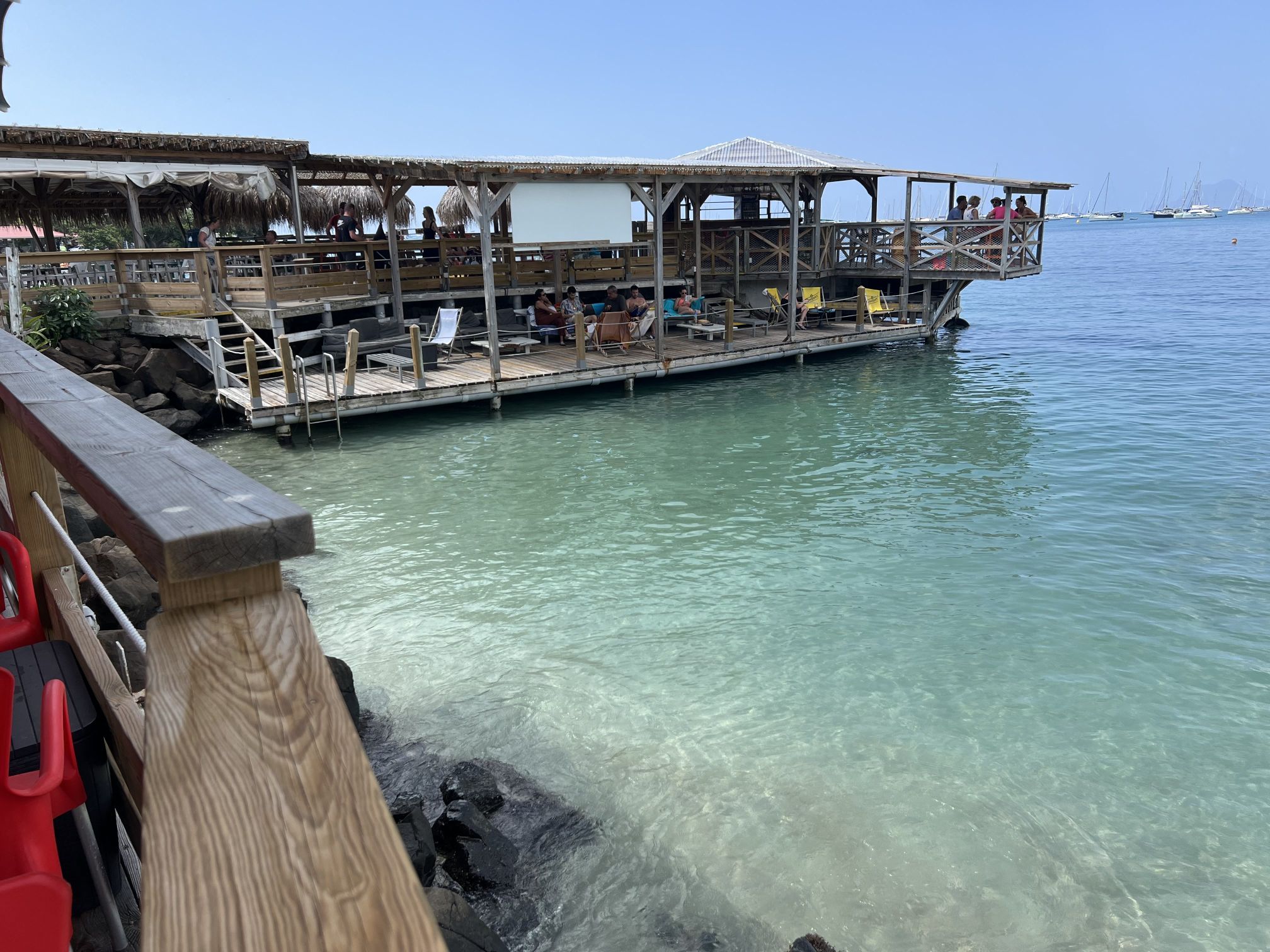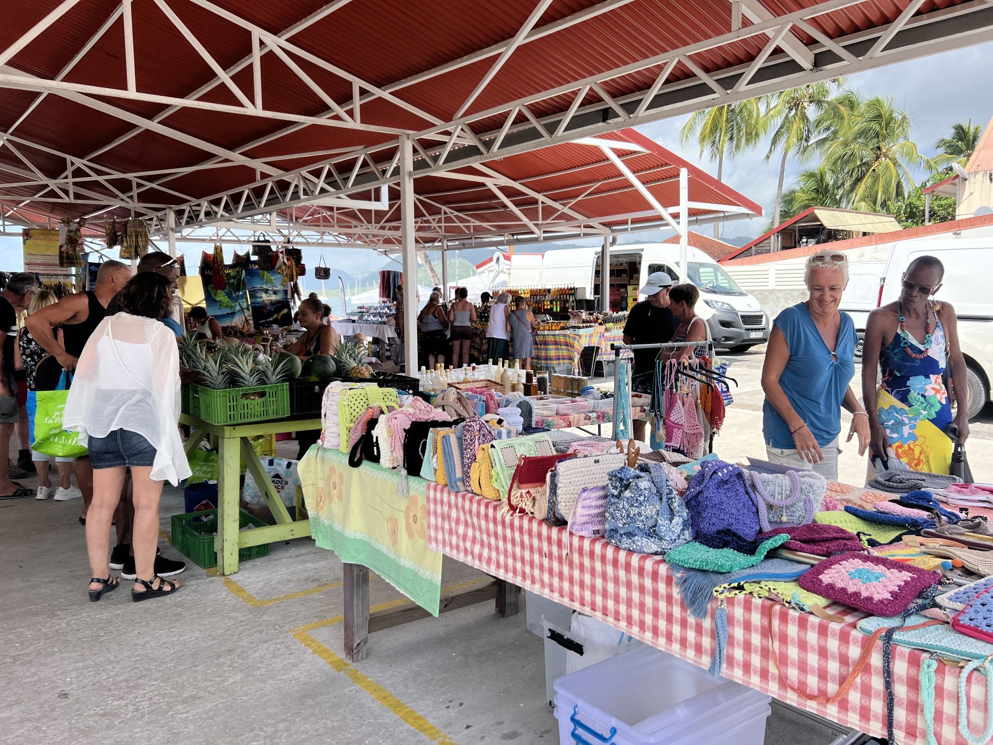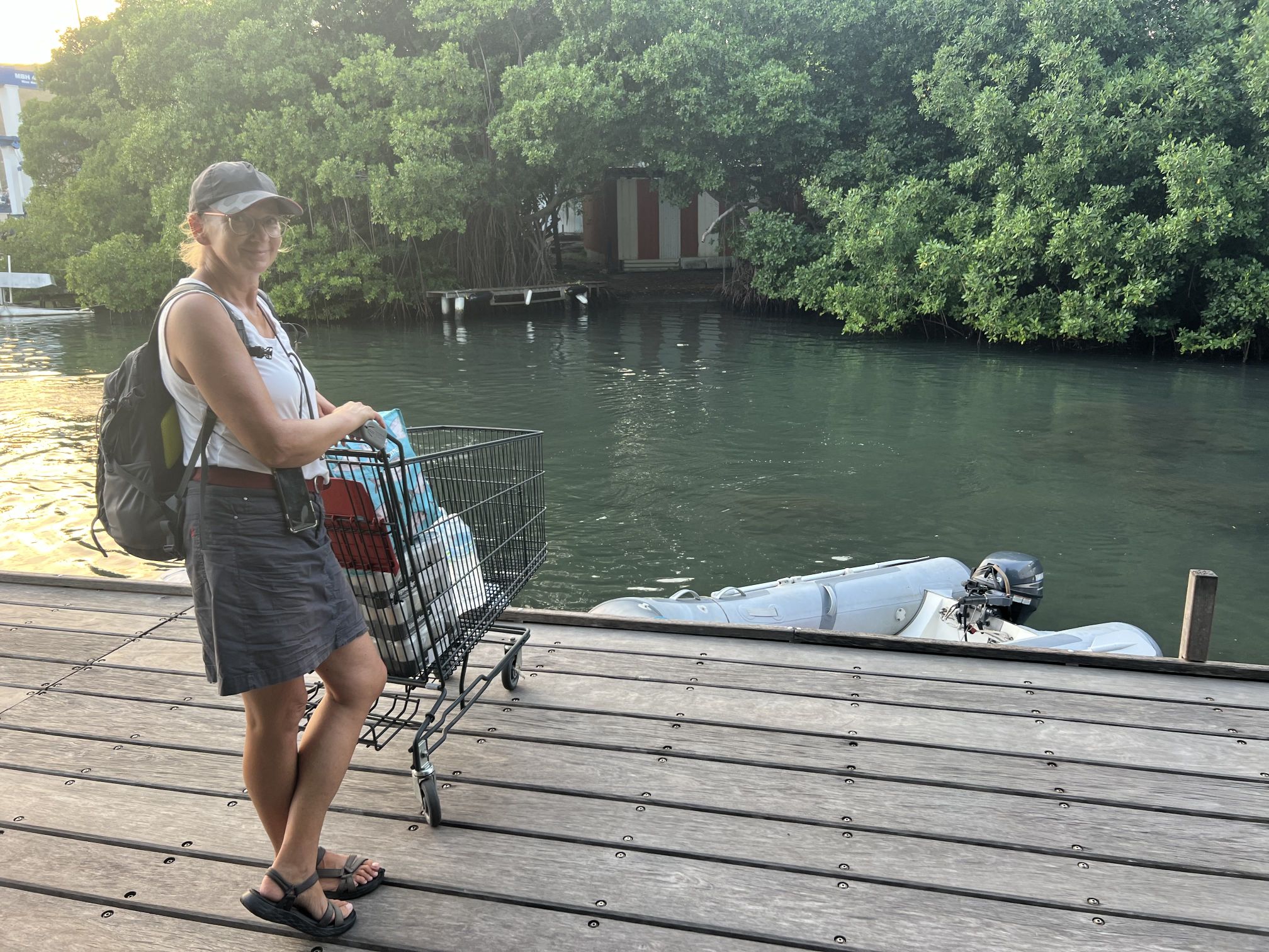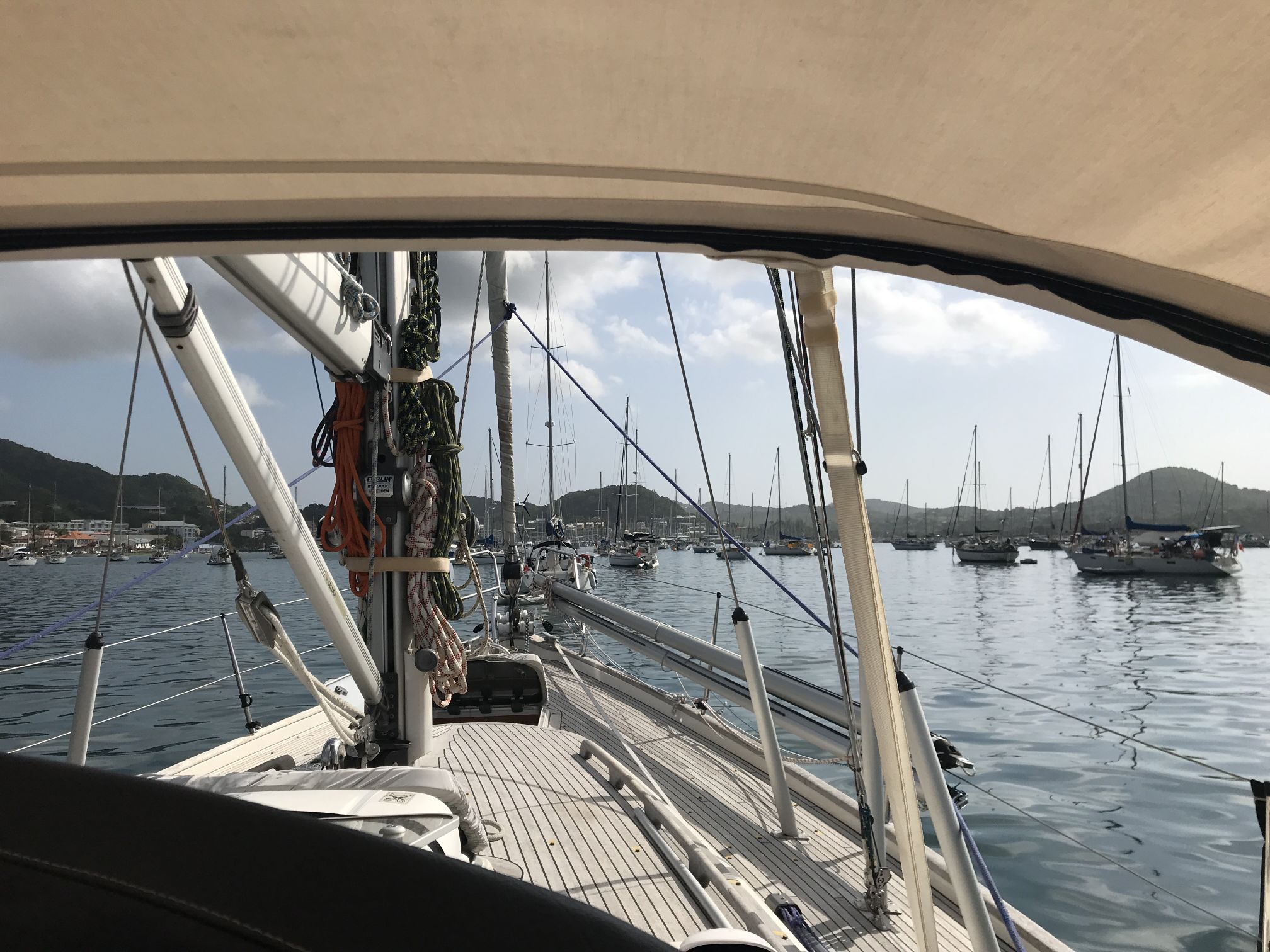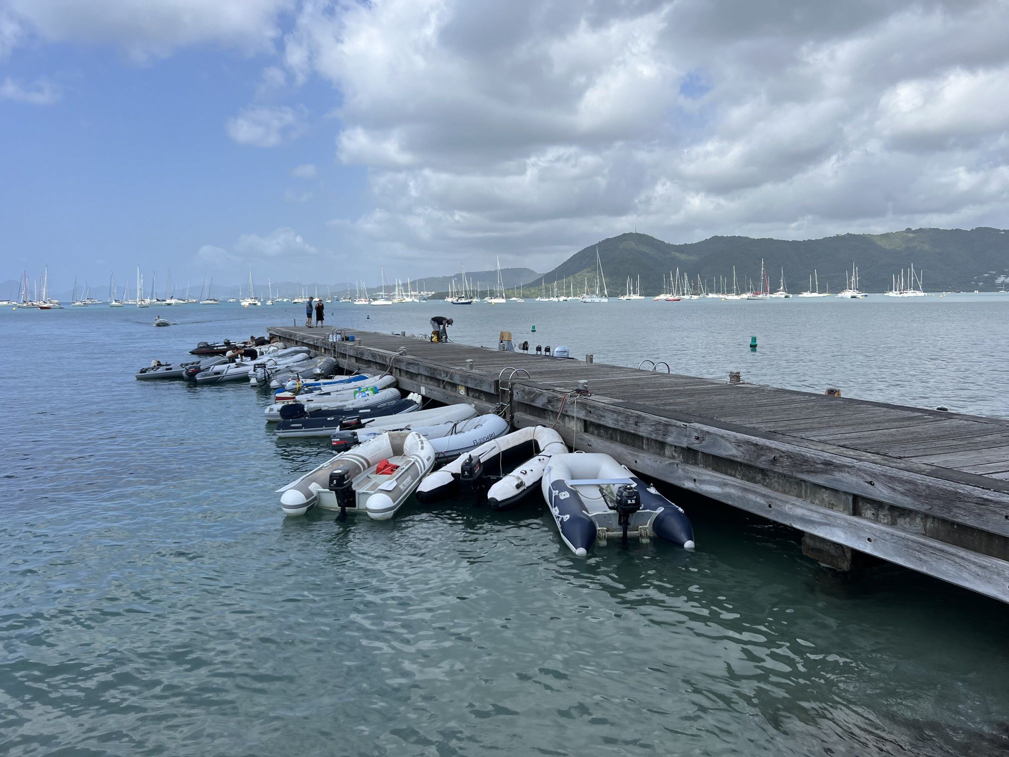 Unser Aufenthalt in Martinique wird durch das Abholen der Lichtmaschine aus St. Lucia in zwei Abschnitte geteilt. Zuerst liegen wir für vier Nächte in einem Ankerfeld vor dem Hafen von Le Marin. Dort gibt es einige große Ankerfelder mit bestimmt einigen hundert Booten. Wir finden einen geschützten Platz relativ nah am Hafen und auch in der Nähe des Dingi-Docks vom Supermarkt (!!!). Voll krass. Einkaufen im französischen Supermarkt und dann mit dem Korb direkt zum Dingi-Dock fahren. Was für ein Luxus. Unsere Getränkelager können problemlos und ohne große Schlepperei aufgefüllt werden. Da Martinique ein Überseegebiet von Frankreich ist, hat der Supermarkt ein relativ gutes Angebot. Also werden auch die Vorräte aufgestockt.