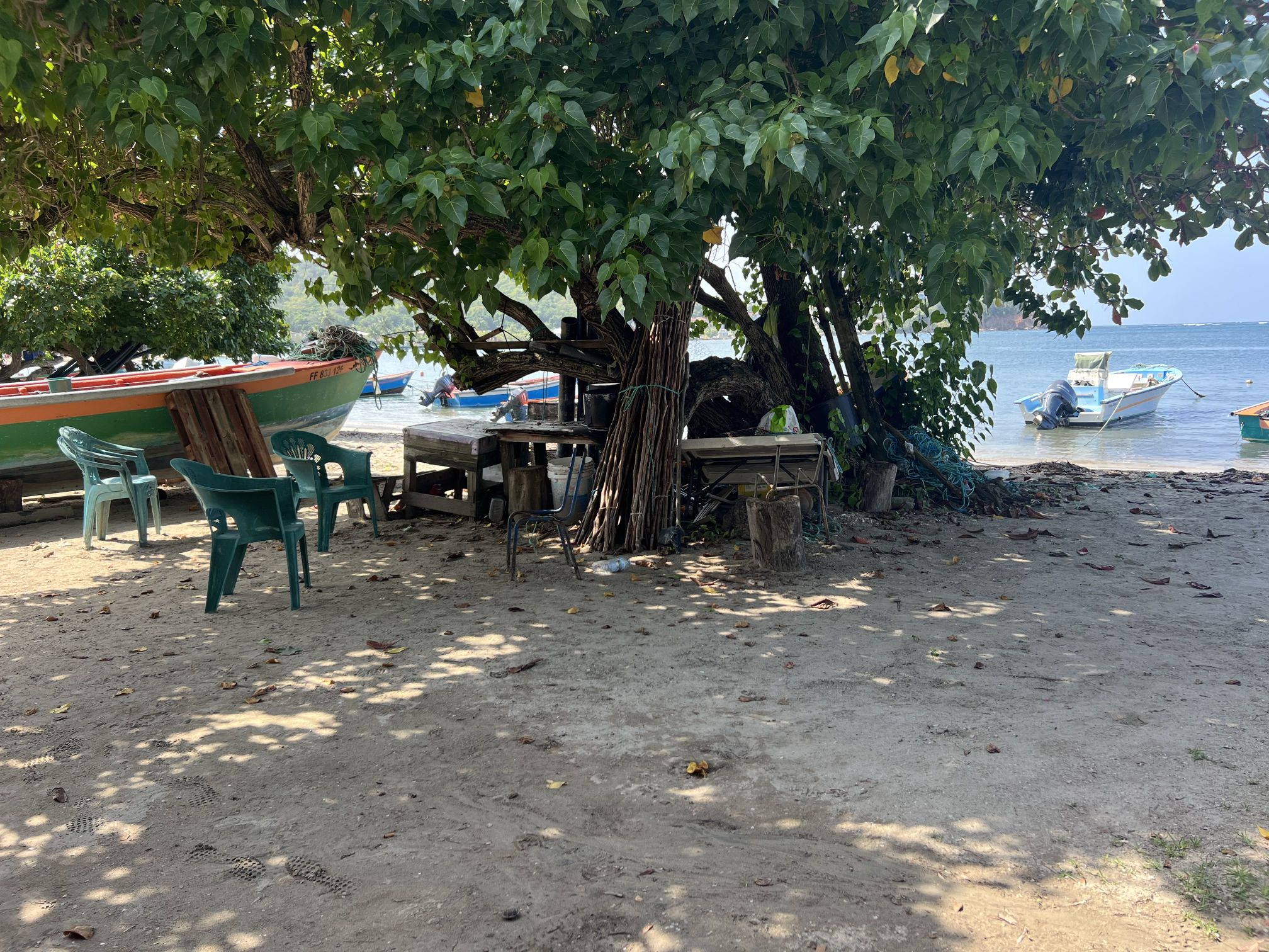 Bei unserem zweiten Aufenthalt auf Martinique liegen wir im Hafen von Fort de France. Zum Glück. Denn in der ersten Nacht dreht der Wind auf Nord und es gibt in vielen Ankerbuchten heftigen Schwell. Dort reißen sich Boote los und stranden sogar. Auch die Leute die keinen Schaden haben, werden von den enormen Wellen kräftig hin und her geschüttelt. Wir merken davon im Hafen nichts und hören erst am nächsten Tag von den verschiedenen Schicksalen und Erlebnissen.