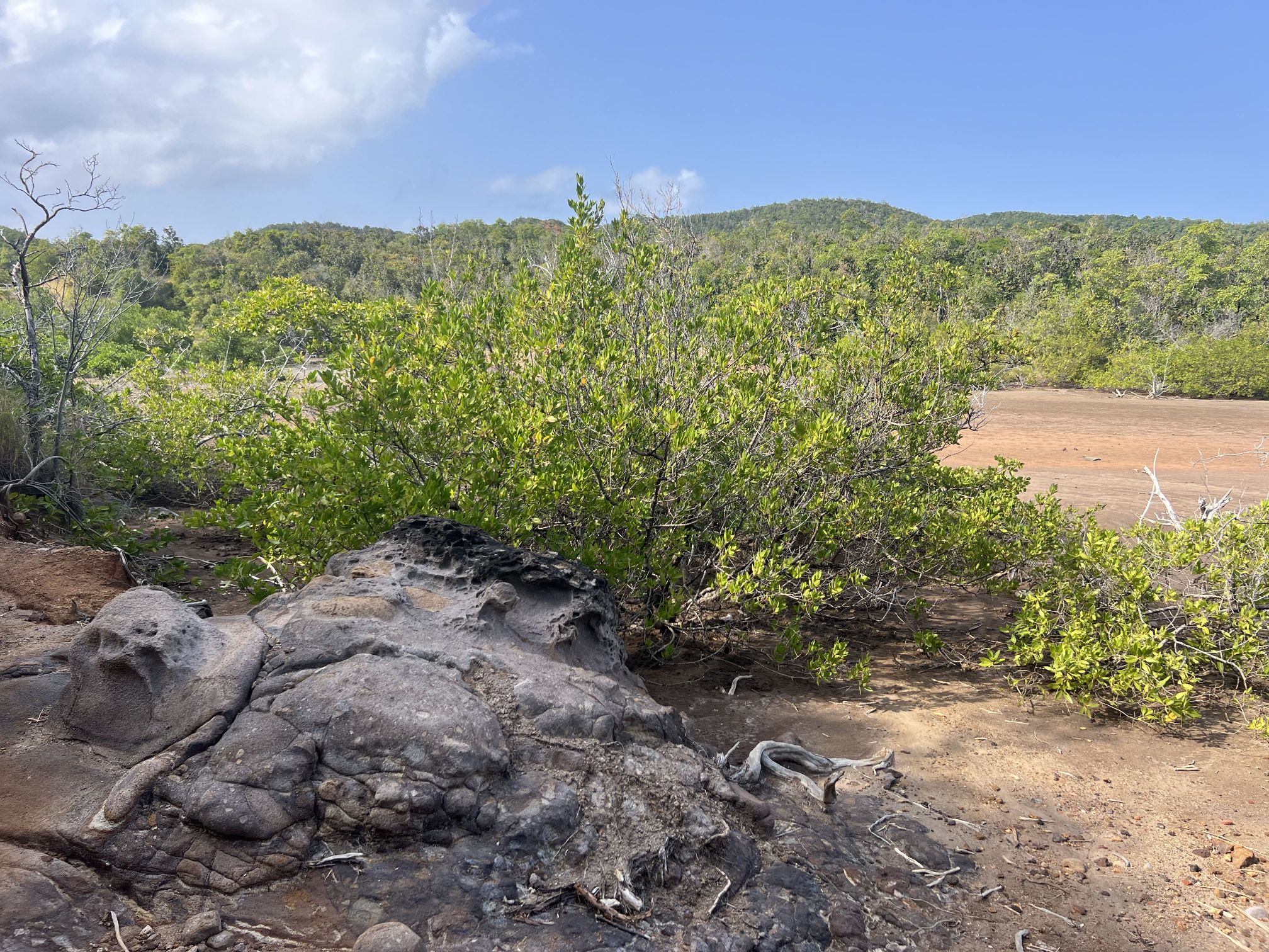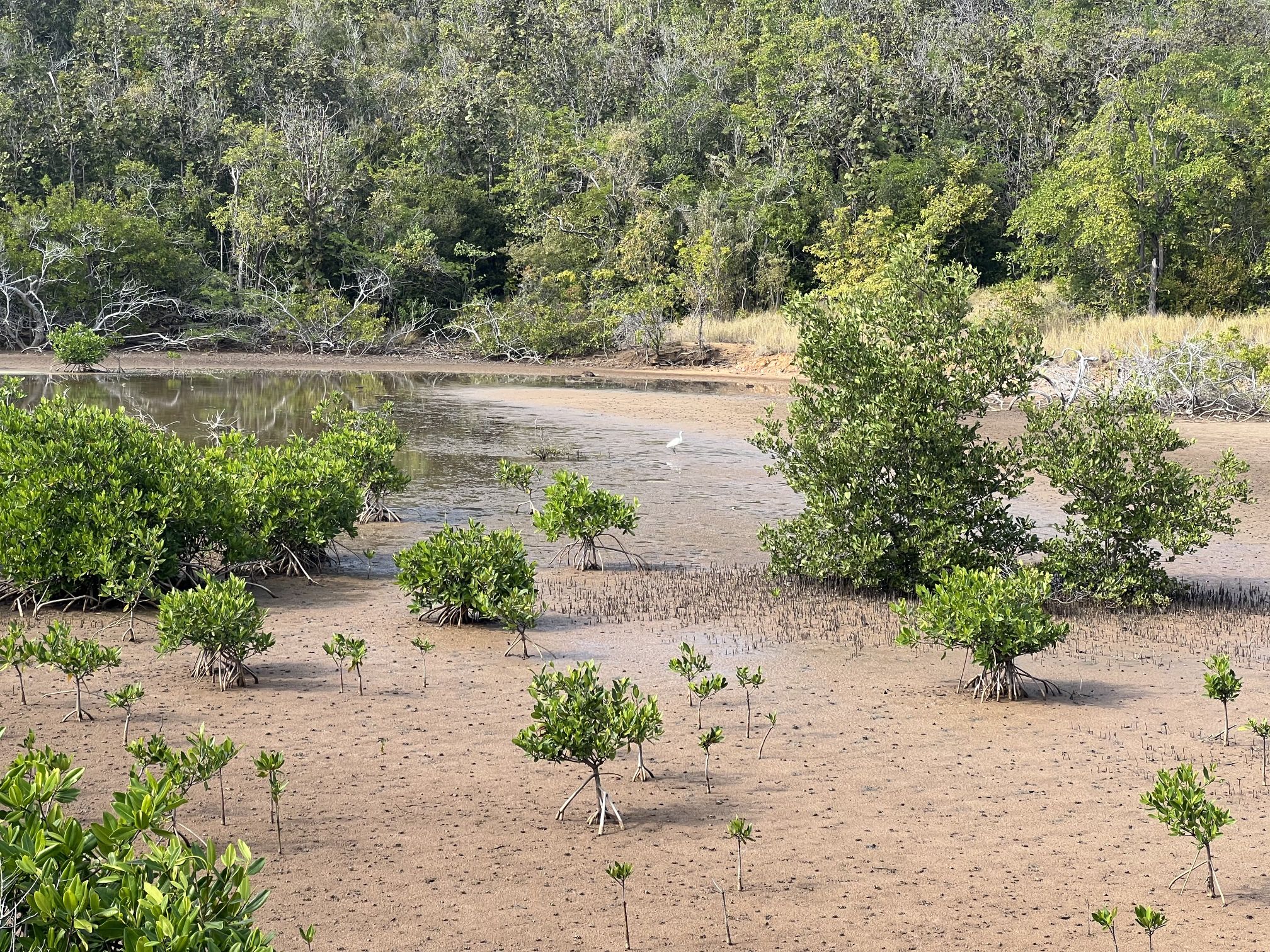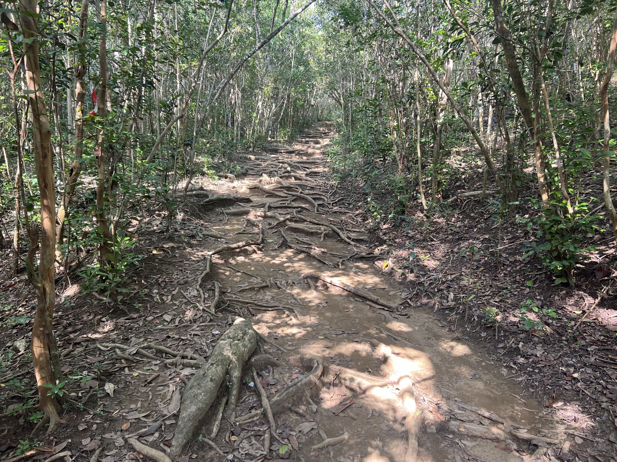 Der erste Autoausflug führt uns eher in den Süden und an die Ostküste der Insel. Hier ist die Vegetation nicht so üppig und eher landwirtschaftlich geprägt. Das kleine Städtchen St. Anne im Süden ist sehr hübsch, die Salinen-Seen finden wir aber nicht so spektakulär. Dafür ist die Halbinsel Caravelle wieder schön und wir machen einen Zwischenstopp, um eine Wanderung durch einen Mangrovensumpf zu machen.