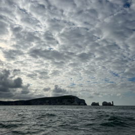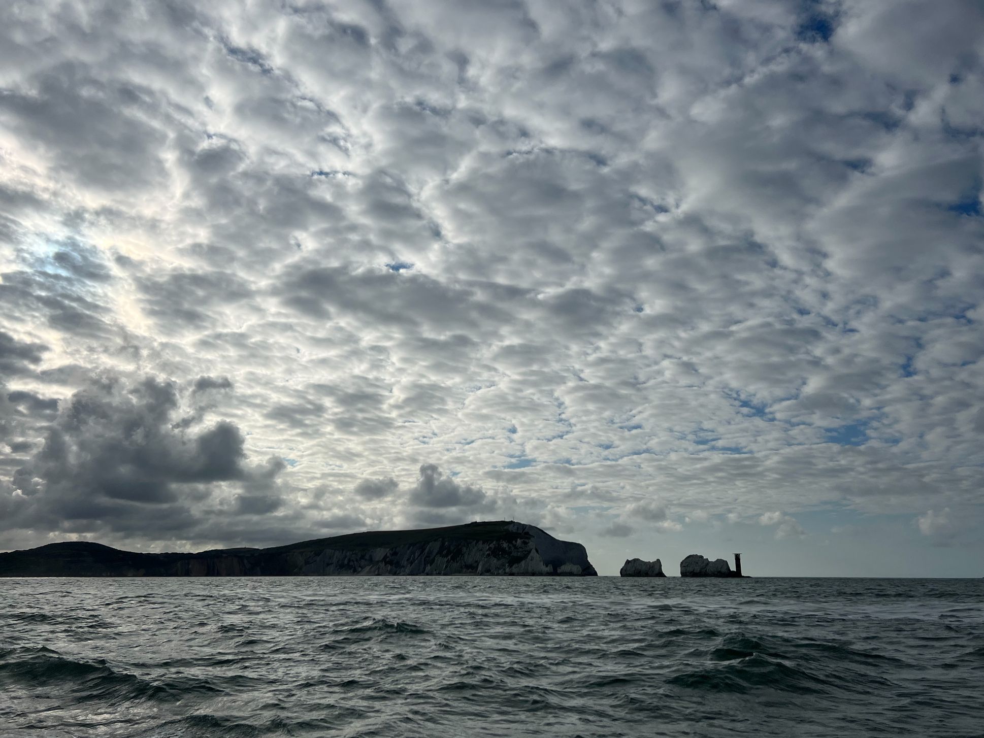 Der starke Westwind lässt endlich nach und so können wir am 6. Juli von Portsmouth weiter nach Weymouth. Die See bei den Needles, Westspitze der Ilse of Wight, ist trotz nachlassendem Wind echt kabbelig.