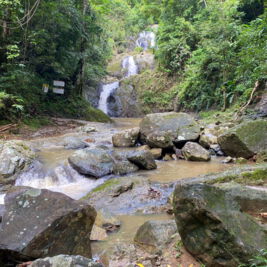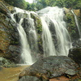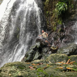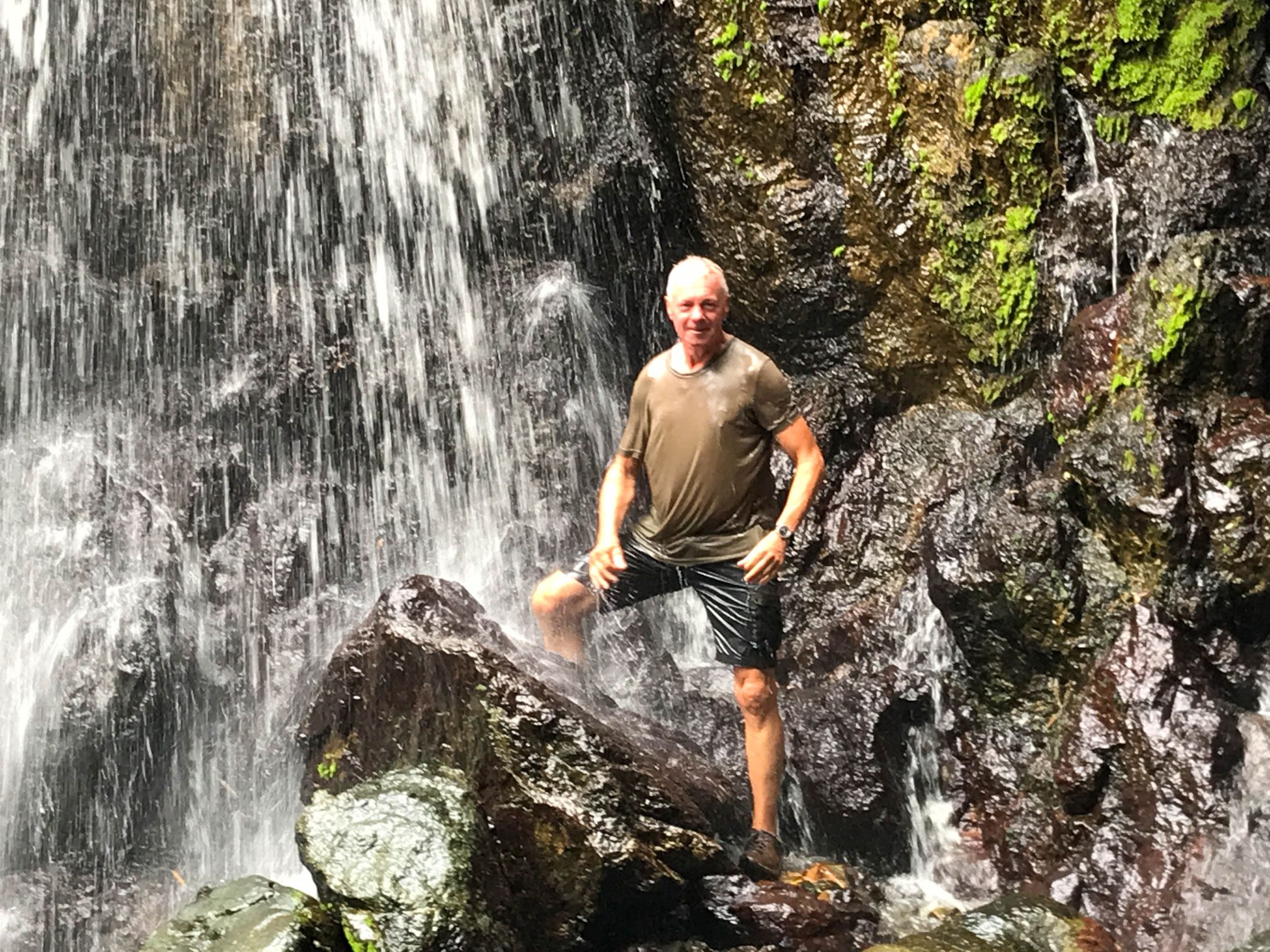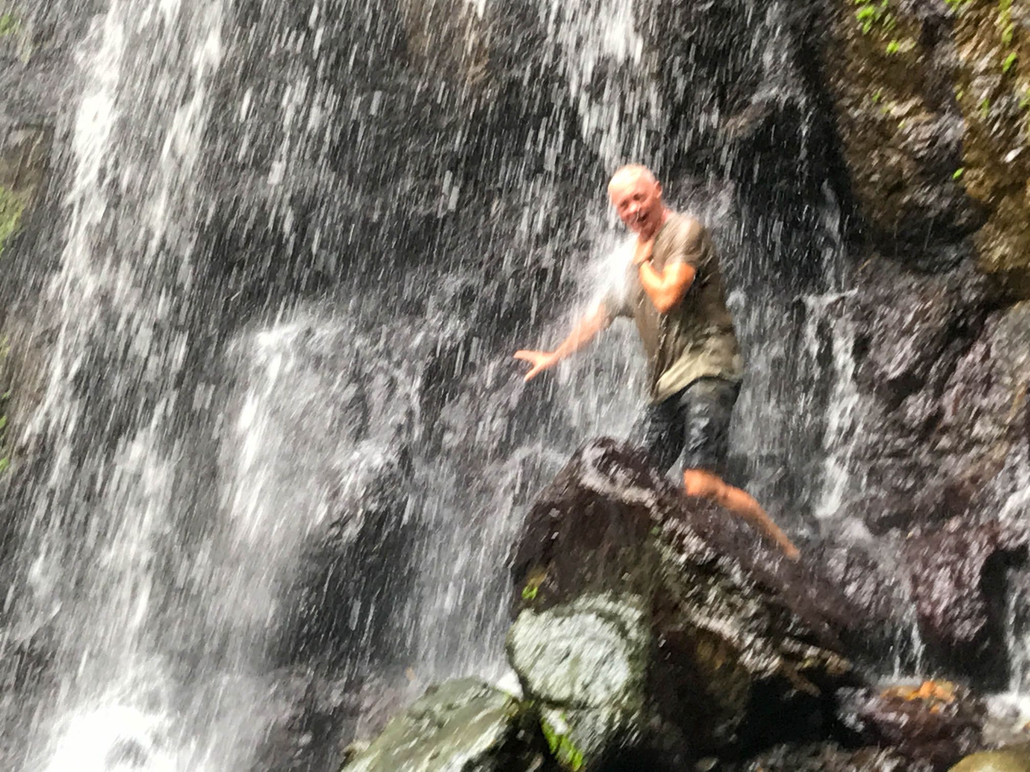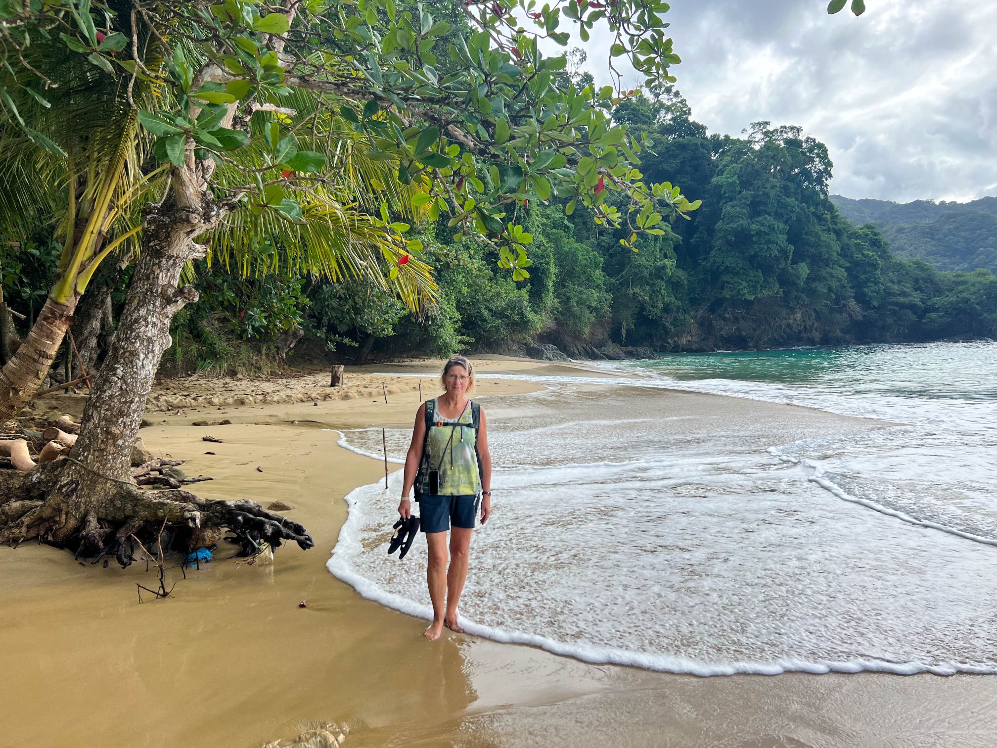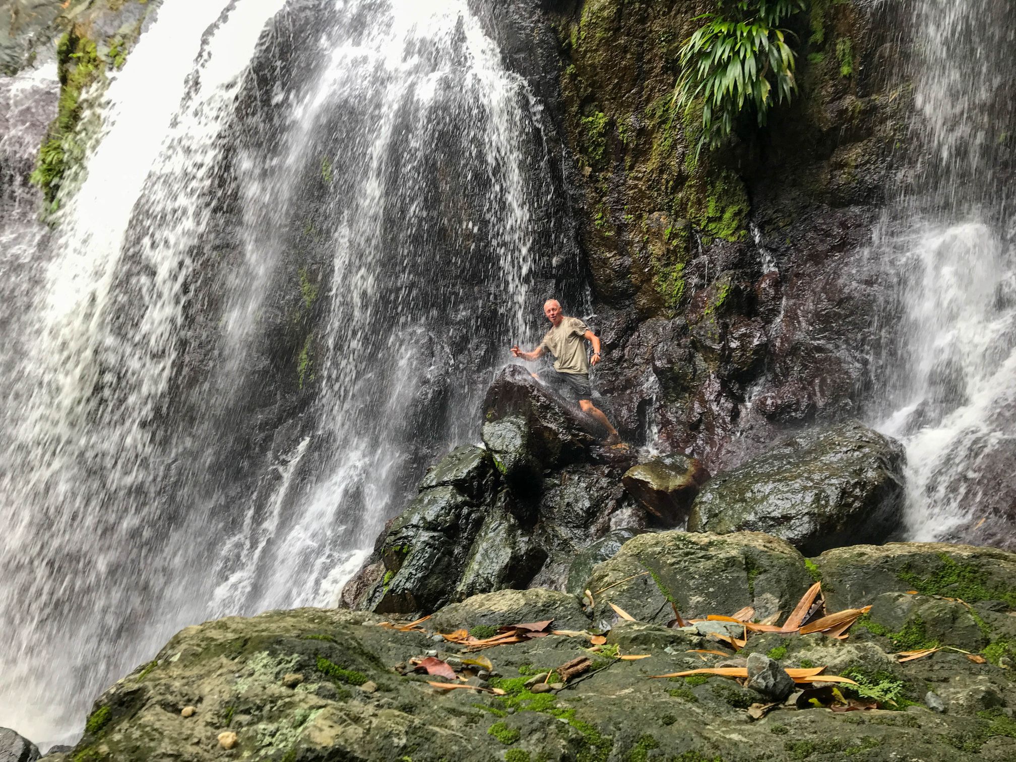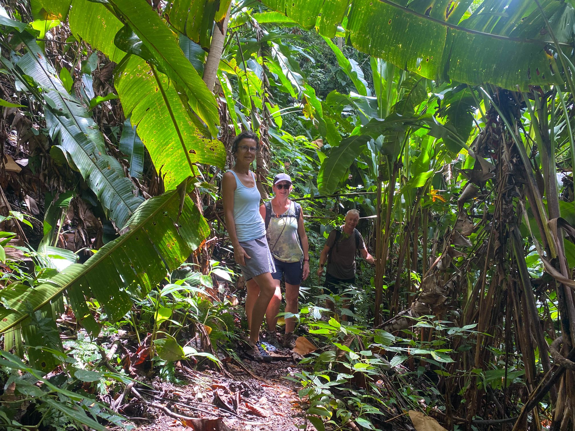 Wir gehen die Tage auf Tobago entspannt an, wollen aber natürlich auch ein bisschen von der Insel sehen. Am Dienstag unternehmen wir eine Wanderung (ca. 17 km) durch den Regenwald zum Flagstaff Hill. Dort haben wir eine schöne Aussicht auf die Bucht und Charlotteville. Leider ist es etwas diesig. Trotzdem ist es ein schöner Ausflug durch dieses "größte Regenwaldgebiet der westlichen Hemisphäre". In den nächsten Tagen nutzen für unsere Erkundungstouren auch zweimal den öffentlichen Bus. Anders als auf Barbados gibt es einen Fahrplan (der aber nur zur groben Orientierung dient). Der Bus ist klimatisiert, es gibt richtige Haltestellen und keine laute Musik. Alles ziemlich „zivilisiert“. Wenn die Leute aussteigen wollen, rufen sie „Stopp Bus, Driver“. Wir fahren einmal in den Südosten zur Inselhauptstadt Scarborough. Naja, kann man gesehen haben. Aber eine richtige Stadtbegeisterung entwickelt sich bei uns nicht. Ein anderes Mal fahren wir zur kleinen Ortschaft Roxborough an der Atlantikküste. Von dort wandern wir zum Argyle-Wasserfall. Die Wanderung und der Wasserfall waren sehr beeindruckend.