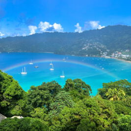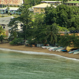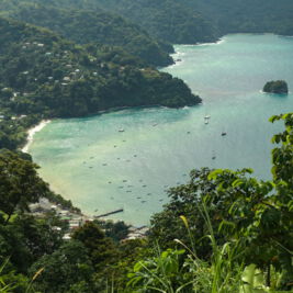 Tobago ist im Norden eher gebirgig und von dichtem Regenwald bedeckt. Im flacheren Süden findet man die meisten Hotels und Stände mit interessanten Korallenriffen.
