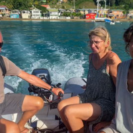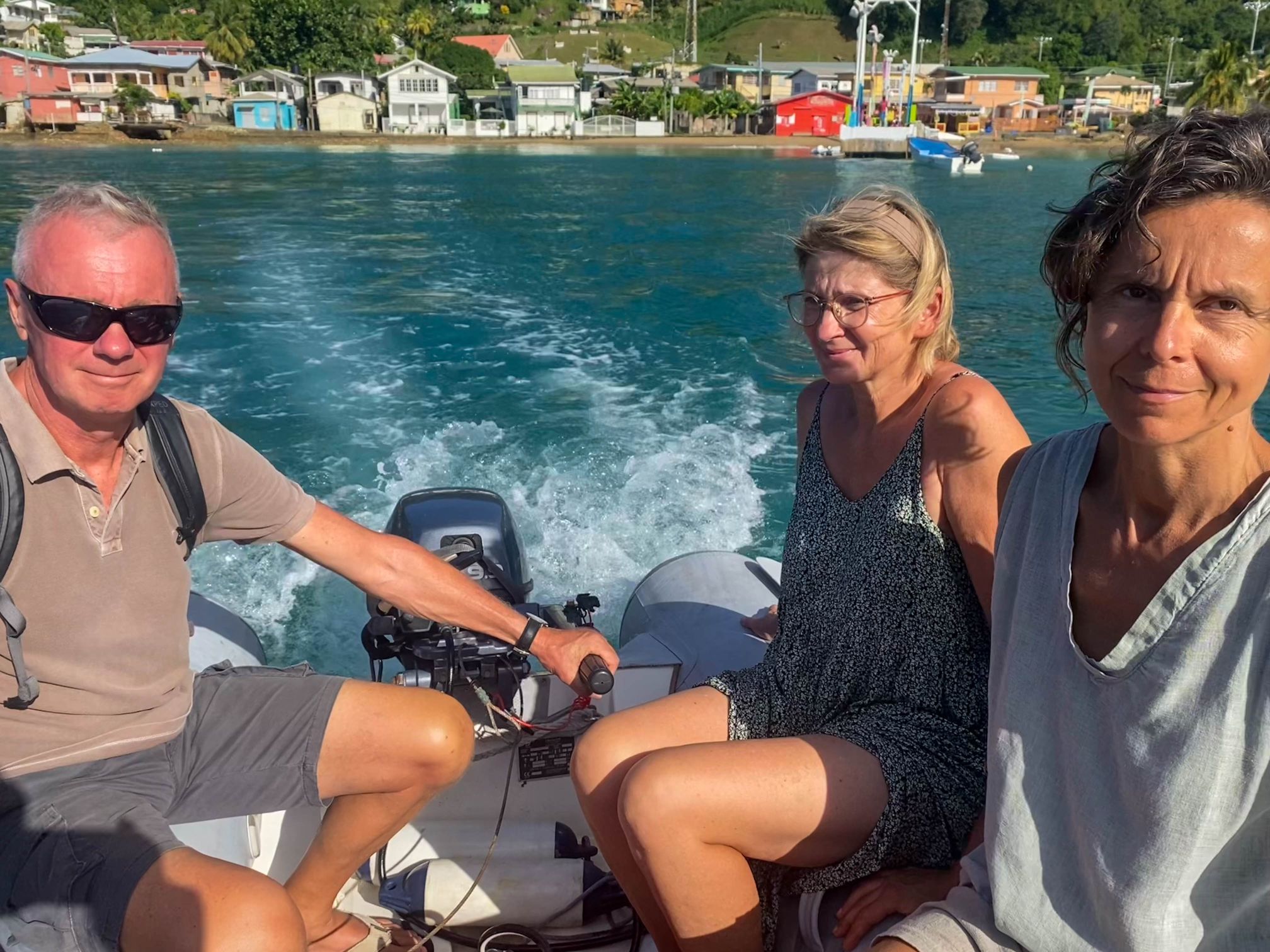 Ansonsten bleiben wir aber in der näheren Umgebung der Bucht. Wandern noch mal zur Piratenbucht (ehemaliger Rückzugsort der Seeräuber) und zum Campleton Fort, relaxen auf dem Boot und gehen auch zweimal zu „Sharon“ zum Abendessen. Bei der einen Rücktour zum Boot „entern“ ein paar einheimische Kinder unser Dinghy und Lieni fährt mit ihnen eine kleine Runde. (Nachdem er genickt hat, waren ganz schnell fünf Jungs im Wasser und zogen sich auf das Dinghy. Das war echt ein Schauspiel.) Nicht nur die Jungs, auch Lieni hatte seinen Spaß.